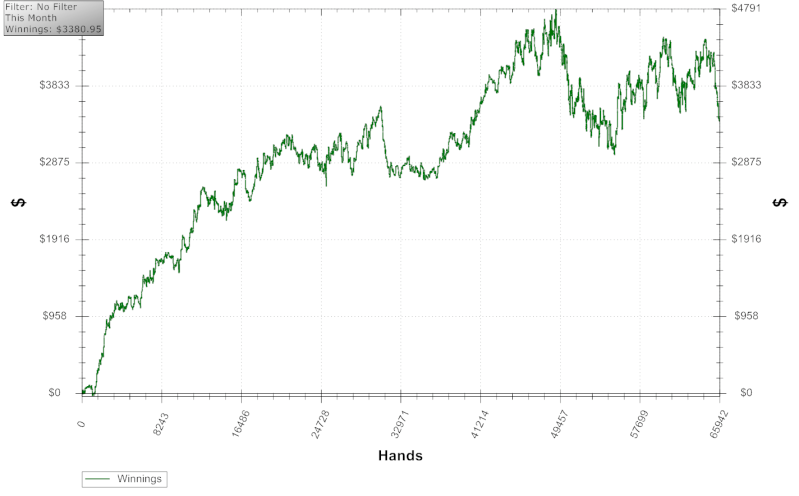 Month was pretty good, ran hot obviously, only played 10k hands but fairly satisfied with my results. First month ever with positive non-showdown winnings!