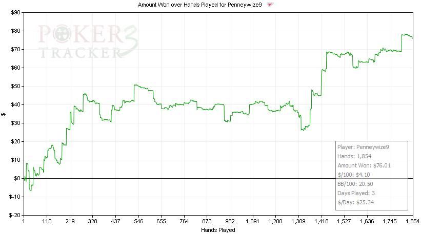 First shot at 50nl fr (plus a couple of hundred 100nl), add about $50 for rb, so just about broke even. Only 2 weeks of play, started atrociously, down 6 buyins in first week, then figured out what I was doing wrong and was about 150 up until the last day when I played 8 tables whilst really tired and threw it all away, sigh, lives and learns. | |