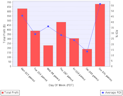 interested in your thoughts on this. I personally have never done well on friday nights and saturday. These are peak grinding times. This is over a sample of about 300 games per day.