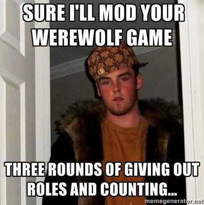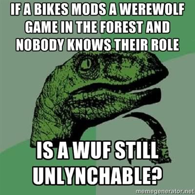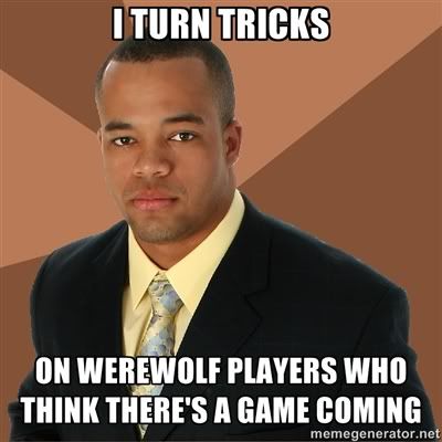 I will also play. I'm going to be super wolfy and active this game just saying...cause all you bitches all be like "bigred never contributes...lynch him. Wait a minute, bigred is contributing, must be a wolf...lynch him" | |